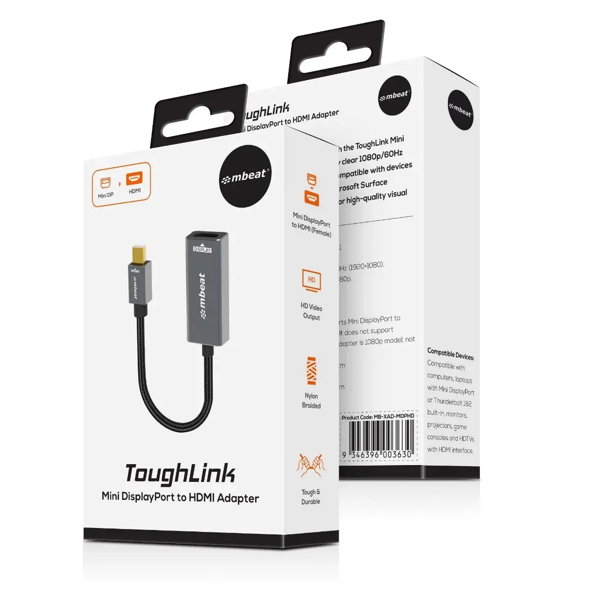Elevate your connectivity with the mbeat Tough Link Mini DisplayPort (male) to HDMI (female) Adapter, providing reliable and high-quality connections for your visual and audio needs.