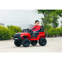 The Lenoxx Jeep Inspired Design Ride-on Electric Car epitomizes the essence of adventure and style, captivating young imaginations with its sleek design and thrilling functionality.Equipped with a remote control for parental guidance, it's perfect for safe and adventurous playtime.Modeled after the iconic Jeep, this ride-on electric car offers an immersive driving experience with intuitive forward and reverse controls, empowering young drivers to explore their surroundings with confidence and ease. Crafted with meticulous attention to detail, it boasts realistic features such as working headlights, horn sounds, and MP3 connectivity, elevating the excitement of every journey. Powered by a rechargeable battery, it ensures hours of uninterrupted play, while its sturdy construction guarantees durability and safety. Whether navigating backyard trails or cruising sidewalks, this Jeep-inspired ride-on promises endless thrills and unforgettable adventures for aspiring adventurers.