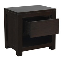 The Amsterdam 1 Drawer Bedside Table is the epitome of sleek design and practicality. Masterfully constructed from solid mahogany timber, this table is a robust companion to your nightly repose. Measuring 55.0 cm in width, 40.0 cm in depth, and 54.0 cm in height, it fits neatly beside your bed, offering ample space atop and within. In the realm of color, choose from the rich and sophisticated Chocolate, the natural and airy Light Pecan, or the classic Mahogany finish. Each variant is thoughtfully selected to enhance the wood's exquisite grain and build a warm, inviting atmosphere in your sleeping quarters. This bedside table comes fully assembled, ensuring immediate enjoyment without any additional effort. Its clean lines and unassuming elegance make it a versatile addition to any bedroom decor, promising both functionality and a timeless aesthetic that quietly whispers sophistication.