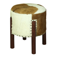 Immerse yourself in the rustic charm and timeless elegance of the Heritage Genuine Goat Hide Ottoman/Footstool. This exquisite piece is more than just a furniture item; it's a statement of sophistication and a nod to nature's raw beauty. Handcrafted with meticulous attention to detail, this ottoman combines the rugged allure of genuine goat hide with the sturdy sophistication of solid mahogany timber. The natural variations in the goat hide create a one-of-a-kind aesthetic, ensuring that each piece is unique and brimming with character. The Heritage Ottoman's design is a beautiful blend of rustic and contemporary styles, featuring a cylindrical shape adorned with brass stud accents that evoke a sense of vintage charm. The rich, natural hues of the goat hide complement the deep, warm tones of the mahogany legs, creating a harmonious balance that will enhance any interior decor. Measuring 44.0 x 44.0 x 49.0 cm, this versatile ottoman serves as both a comfortable footstool and a stylish accent piece. Its compact yet impactful design makes it perfect for any room, whether it's placed by the fireplace in a cozy living room, at the foot of your bed in a luxurious bedroom, or as an inviting seat in your entryway. The Heritage Genuine Goat Hide Ottoman/Footstool arrives fully assembled, ready to bring a touch of rustic elegance to your home. Let this unique piece inspire your decor and provide a perfect blend of comfort and style for years to come.