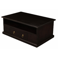 Crafted from solid mahogany timber, the Tasmania Coffee Table brings timeless elegance and durability to your living space. With its rich, natural textures and sturdy construction, it offers ample storage with two drawers and an open shelf, keeping your essentials organized and within reach. Available in three sophisticated finishesChocolate, Light Pecan, and Mahoganythis versatile piece adds a refined touch to any room. Best of all, no assembly is required, allowing you to enjoy it right away.