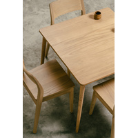 Embrace the timeless elegance and minimalist charm of the Nobu Oak Dining Table. Crafted from premium solid oak timber, this table embodies the essence of Scandinavian design, where simplicity meets functionality. The natural grain of the oak adds a touch of rustic allure, creating a warm and inviting ambiance in any dining space.The Nobu Oak Dining Table is not just a piece of furniture; it is a statement of style and sophistication. Its clean lines and smooth finish exemplify the beauty of modern design, making it a perfect centerpiece for both casual meals and formal gatherings. The compact dimensions of 90 x 90 cm make it ideal for smaller spaces, while still providing ample room for dining and conversation.With minimal assembly required, you can quickly transform your dining area into a haven of style and comfort. The sturdy construction ensures durability, while the lightweight design allows for easy maneuverability.