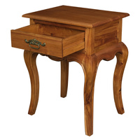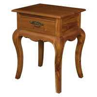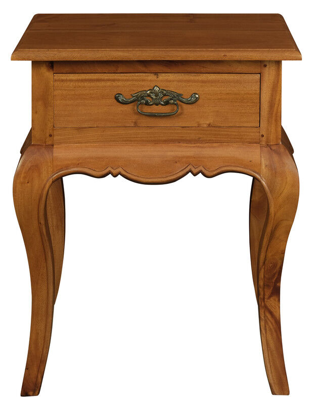 Indulge in the classic charm of the French Provincial 1 Drawer Lamp Tablean embodiment of style meeting utility. Handcrafted with precision in Indonesia, this piece is constructed from solid mahogany, offering a testament to pure craftsmanship and meticulous attention to detail that is the hallmark of truly exceptional furniture. Bask in the inviting atmosphere conjured by its dark honey hue, enriched with a satin finish that radiates warmth. Adorned with brass hardware, it elevates the piece, making it not just a functional element, but also a luxurious statement piece. The quintessential French Provincial design imparts an air of elegance, infusing any space with a sophisticated flair.