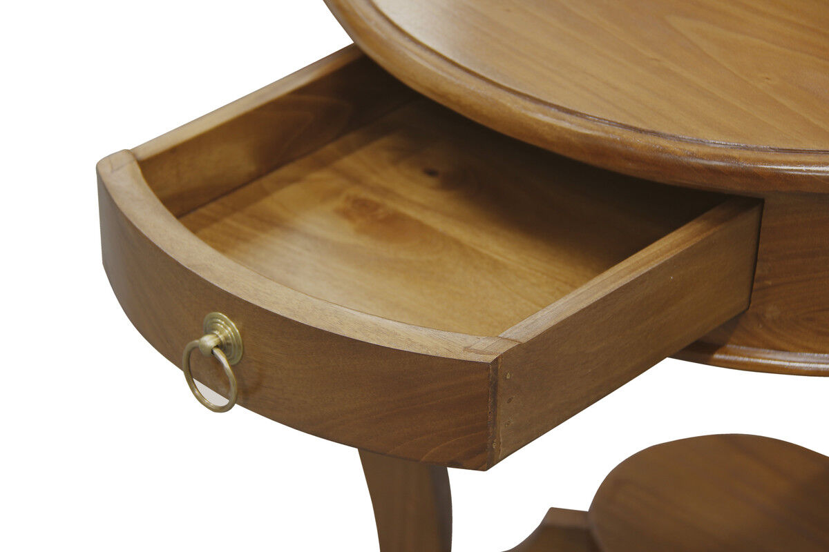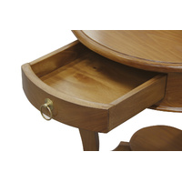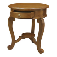 Nestled beside your favorite armchair or framing your sofa, the Cabriole Leg 1 Drawer Lamp Table is a charming companion to any room. Crafted with care from solid mahogany timber and detailed with a brass pull, this table exudes a romantic elegance that complements your home decor. The table stands at 62 cm tall, with a surface diameter of 55 cm, offering ample space for a lamp, your current read, or a vase of fresh flowers. The single drawer, adorned with a brass ring pull, provides a discreet place to store your essentials, keeping them within reach yet out of sight. Finished in a pure, crisp white, this lamp table brings a breath of fresh air into your living space. It's also available in rich chocolate, warm light pecan, and classic mahogany finishes, allowing you to choose the tone that best expresses your style.