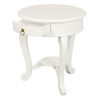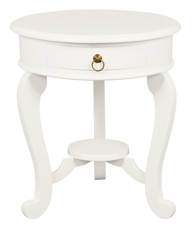 Nestled beside your favorite armchair or framing your sofa, the Cabriole Leg 1 Drawer Lamp Table is a charming companion to any room. Crafted with care from solid mahogany timber and detailed with a brass pull, this table exudes a romantic elegance that complements your home decor. The table stands at 62 cm tall, with a surface diameter of 55 cm, offering ample space for a lamp, your current read, or a vase of fresh flowers. The single drawer, adorned with a brass ring pull, provides a discreet place to store your essentials, keeping them within reach yet out of sight. Finished in a pure, crisp white, this lamp table brings a breath of fresh air into your living space. It's also available in rich chocolate, warm light pecan, and classic mahogany finishes, allowing you to choose the tone that best expresses your style.