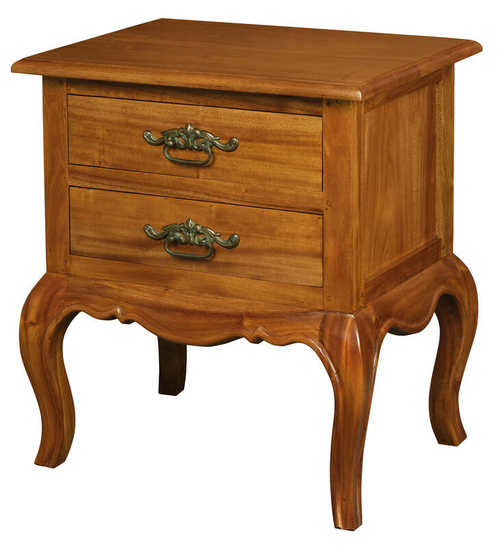 Experience the allure of the French Provincial 2-Drawer Lamp Table, a fusion of classic aesthetics and practical design. Skillfully handcrafted in Indonesia, this exquisite piece is sculpted from solid mahogany, a testament to the unparalleled artistry and the scrupulous detail that distinguish truly extraordinary furniture. Relish the cozy ambiance created by its rich dark honey shade, further enhanced by a satin finish that imparts a gentle radiance. The table is adorned with tasteful brass hardware, which not only adds functionality but also enriches it as an opulent statement piece. The lamp table boasts the signature French Provincial design, renowned for its elegant lines and romantic contours, instantly bringing a refined sophistication to any room. The addition of a second drawer offers increased storage, blending seamlessly into the design, while providing extra space to organize and store your essentials.