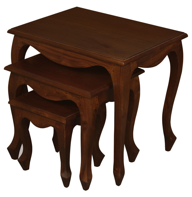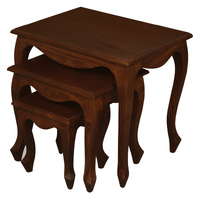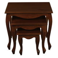 Embrace the timeless elegance of the Queen Ann Nest of Table Set, a captivating ensemble that seamlessly blends classical design with practical functionality. Each table in this exquisite set is meticulously crafted from solid mahogany timber, reflecting a rich heritage of craftsmanship and a dedication to enduring beauty.The Queen Ann style, renowned for its graceful curves and ornate details, is masterfully embodied in this trio of nesting tables. The refined cabriole legs and delicate lines bring an air of sophistication to any room, while the deep mahogany finish adds a touch of warmth and luxury. Perfectly proportioned, these tables are designed to nest together, offering both versatility and style.Weighing a combined 14.0 kg, these tables are robust yet easy to maneuver, ensuring they can adapt to your changing needs and spaces. Arriving fully assembled, the Queen Ann Nest of Tables are ready to enhance your homes décor from the moment they are unboxed.