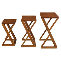 Introducing the Manhattan Nest of Tables, a striking set of three that combines contemporary design with the enduring beauty of solid mahogany timber. These tables are more than functional pieces; they are a testament to modern elegance and sophisticated craftsmanship.The Manhattan Nest of Tables features a unique, angular design that sets them apart from conventional nesting tables. The sleek lines and geometric forms create a visually captivating effect, making these tables a bold statement piece for any interior. The rich, satin finish of adds a touch of luxury and refinement, perfectly complementing modern and minimalist decor styles.Each table in the set is thoughtfully designed to nest seamlessly within the other, offering versatile functionality while saving space when not in use. The solid mahogany construction ensures durability and stability, promising that these tables will remain a stylish part of your home for years to come.Whether used together as a coordinated set or individually throughout your living space, the Manhattan Nest of Tables provides ample surface area for your needs. They are perfect for displaying decorative items, serving as side tables, or providing additional space for entertaining guests.Arriving fully assembled, these tables are ready to enhance your home immediately. Their sophisticated design and high-quality craftsmanship make them an ideal choice for those who appreciate the finer things in life.