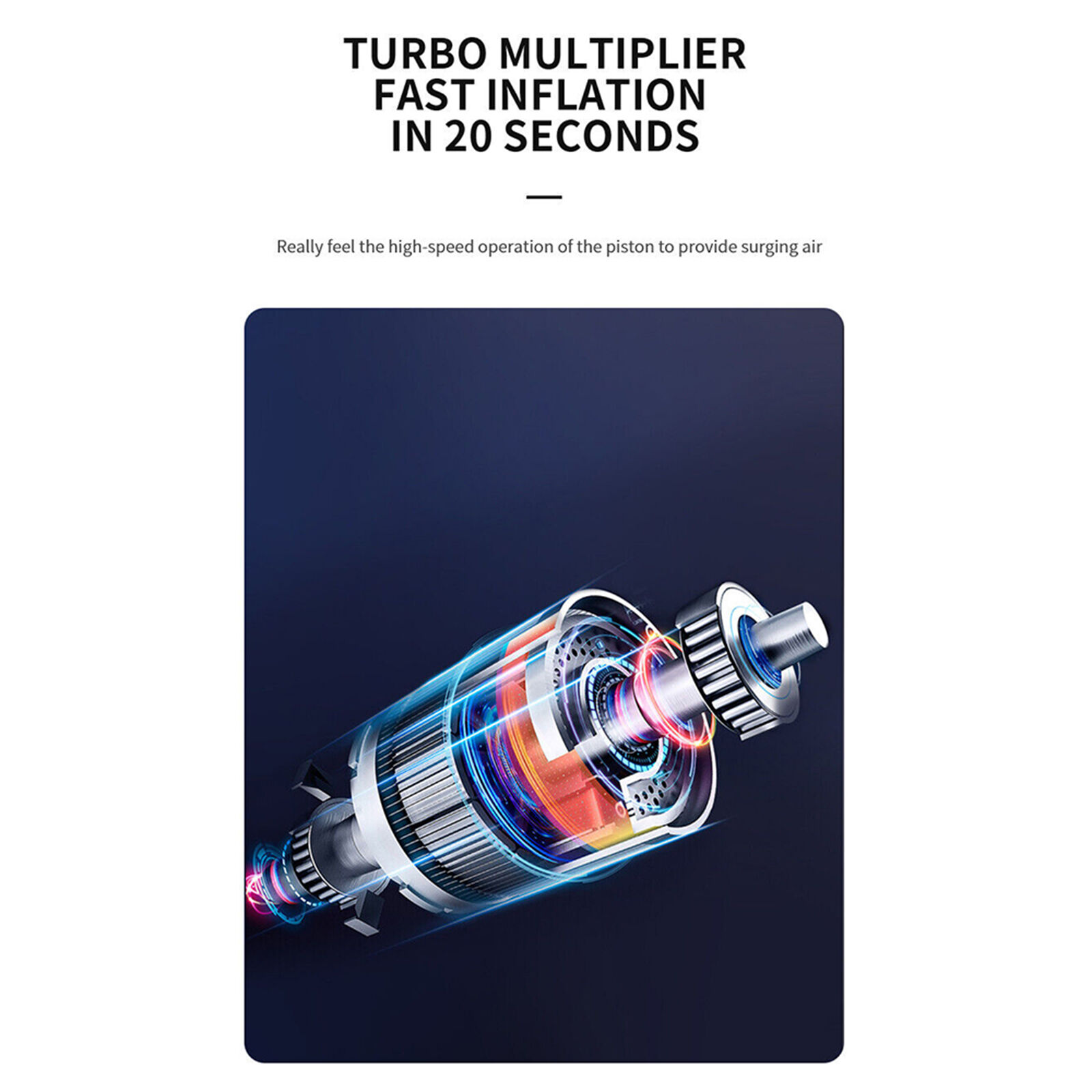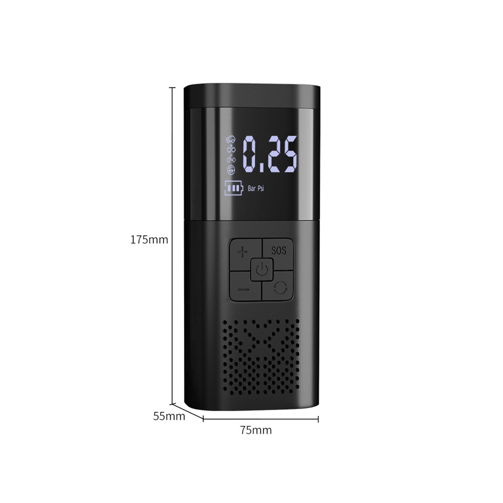 Wireless Portable The portable air compressor is easily storage in your car. Fast inflation speed,Great Heat Dissipation, Large LCD display, Preset tire pressure, Automatic operation, Auto shut off, and Manometry Function,SOS led, come with carry bag.It is extremely easy to use.