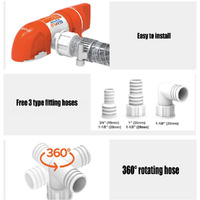 Our best drain down levels ever as low as 10mm or 1/3''. SEAFLO Narrow, Low profile bilge pump fits deep down in small/awkward bilge spaces where other pumps won't fit. Compact, Horizontal or vertical mounting, with 360 Degree Discharge for easy remove and replace and leaves the bilge almost dry. Automatic turns on and off when water rise down.
