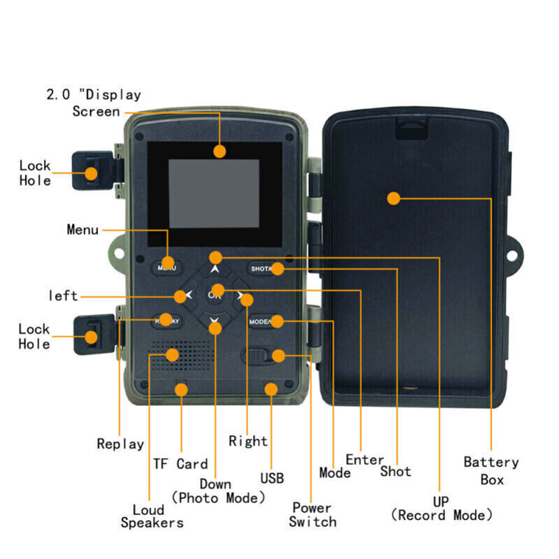 【Waterproof IP562" LCD Screen】: Excellent Sealing and material ensure its outstanding performance in all weathers, rainy or burning sun day. 2" color LCD screen lets you easily setup the game cam and instantly view photos