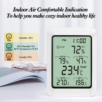 Can be hung on the wall or placed on a table, both ways provide a concise display of temperature and room humidity.