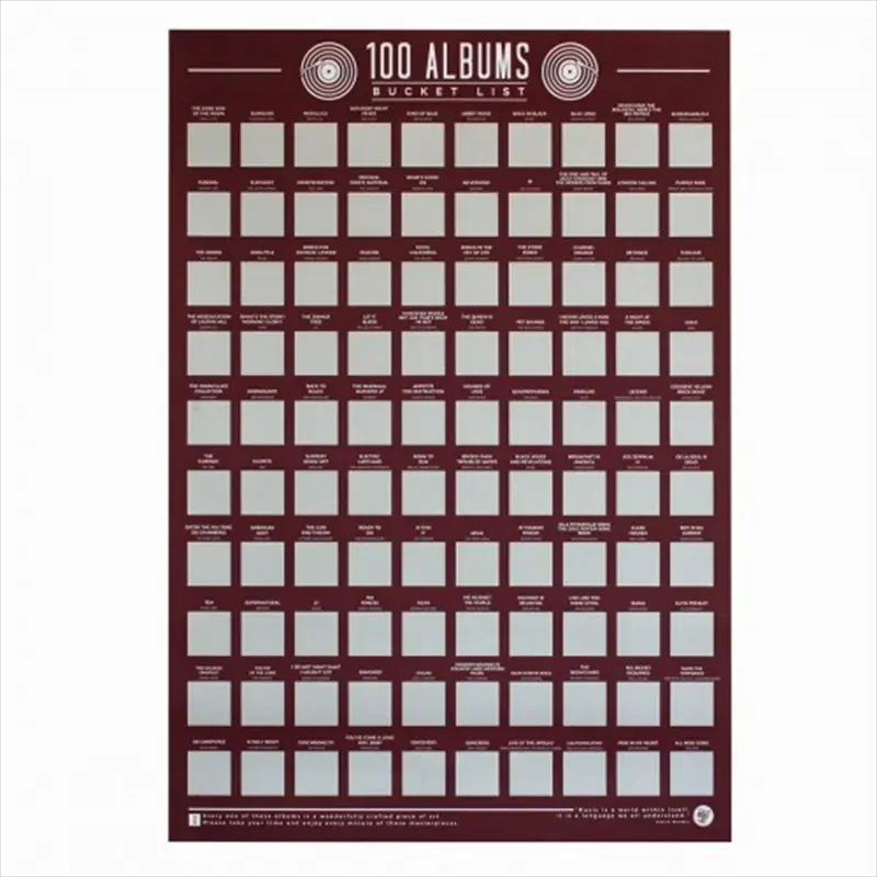 Listen to 100 of the best albums of all time and scratch them off as you go with this fantastic poster. The perfect gift for any music lover, underneath each tab is a beautiful image related to the artist! How many have you listened to?