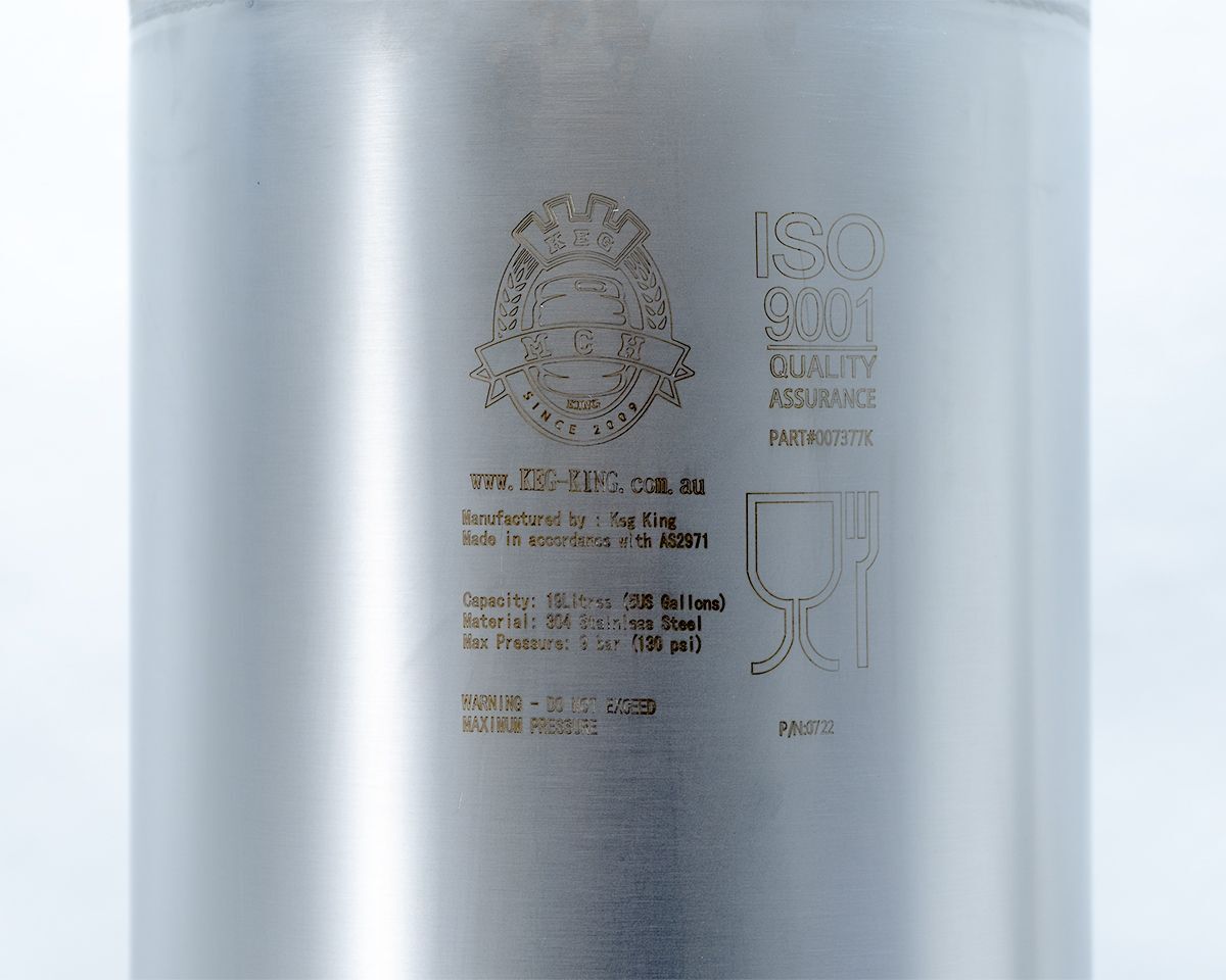 Constructed from food grade 304 Stainless Steel Keg King 19L Ball Lock Kegs are built in compliance with AS2971.