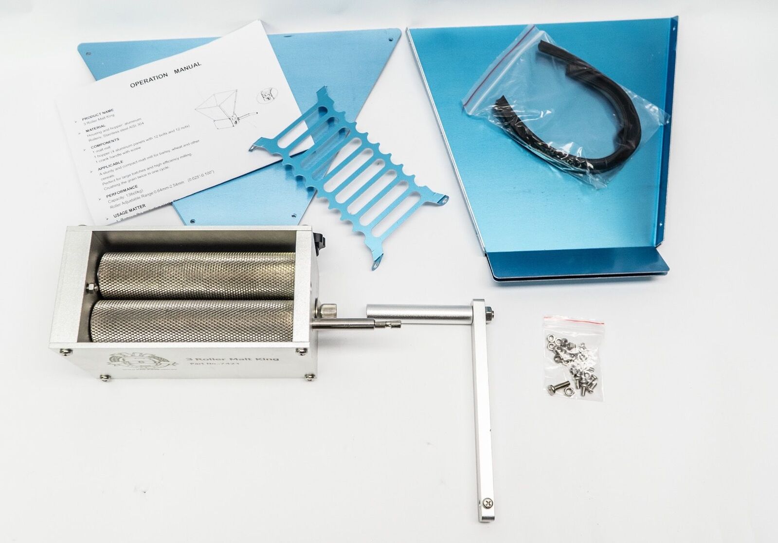 The Malt King - Geared Grain Mill 3 Roller is constructed using materials that will last a lifetime and each mill unit now comes with our NEW steel mounting boards to make crushing grain easier over buckets, containers or any mill catchment system.