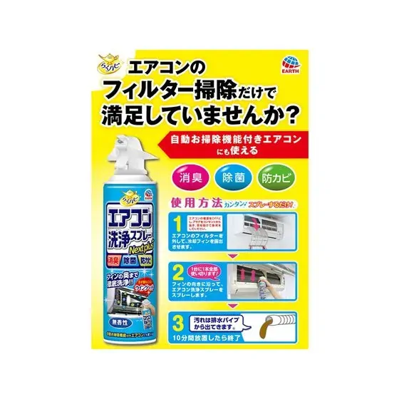 Be sure to follow the dosage. The electrical components of the air conditioner (sensors, electronic substrates, switches, motors, etc.) must not be sprayed by liquid. If used incorrectly, it may cause failure of electrical components. Do not use it on the human body. People who are prone to allergies and rash should not touch or inhale drugs. Please note. * depending on the degree of dirt and the structure of the water pipe, the cleaning liquid may be dripped from the front, so use with towels or old newspaper etc laid down. If used near a gas alarm, the alarm may malfunction.