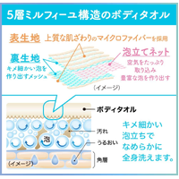 For the skin of modern people that tends to get dry. Body towel for liquid type with zero skin friction concept.