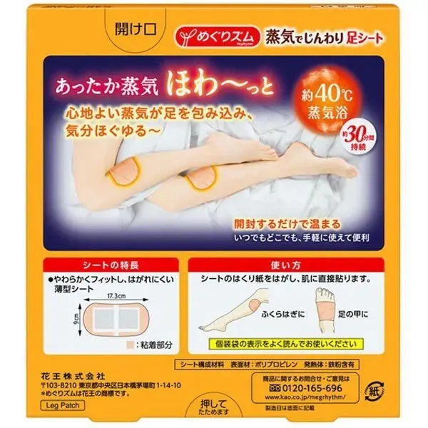 Steam at about 40 degrees Celsius is a comfortable foot pack. After applying it, you can take a steam bath. Plenty of steam envelops your feet and relaxes your mood. A steam bath at about 40 degrees Celsius lasts for about 30 minutes. A thin sheet that fits softly and doesn't come off easily. It warms up just by opening it, so it's convenient to use anytime, anywhere! It is recommended to apply it to the calf or the instep while using a computer or smartphone after sitting or moving.