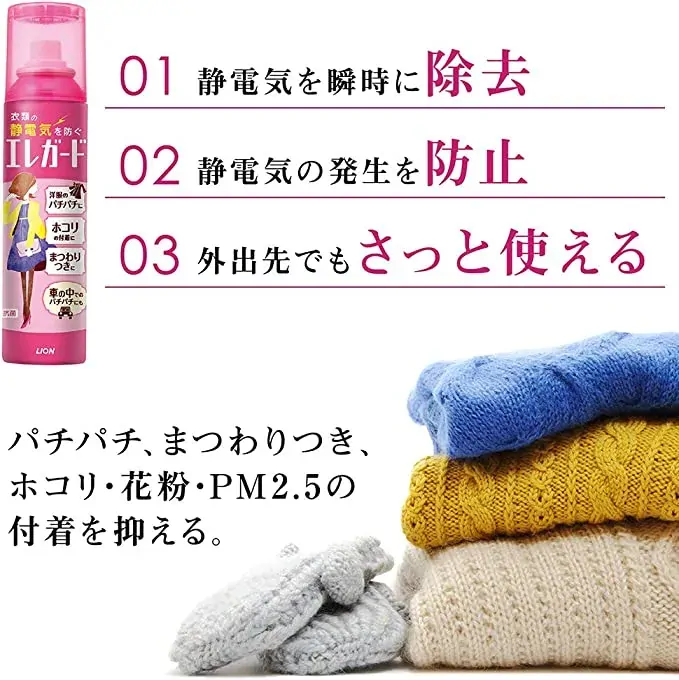 This is an anti-static spray that instantly suppresses unpleasant static electricity on clothing, such as crackling when undressing or clinging to skirts.