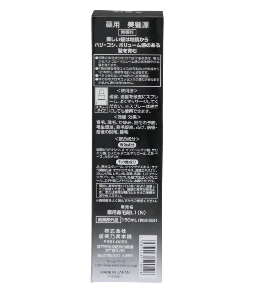 A hair growth agent for women that loosens hardened skin, adjusts moisture, and leads to soft skin. Prevents hair loss and grows healthy hair with firmness, body, and volume from the roots. Contains peonies, cherry leaves, succulents, and gagome kelp extracts (plant moisturizing extracts). It has a refreshing feel with no stickiness, and has a faint aromatic essence scent, but it doesn't leave any residue behind. Unscented.