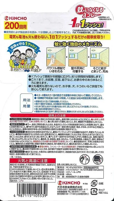 4.5 to 8 tatami MATS, 1 push. The effect spreads throughout the room and lasts for about 12 hours.