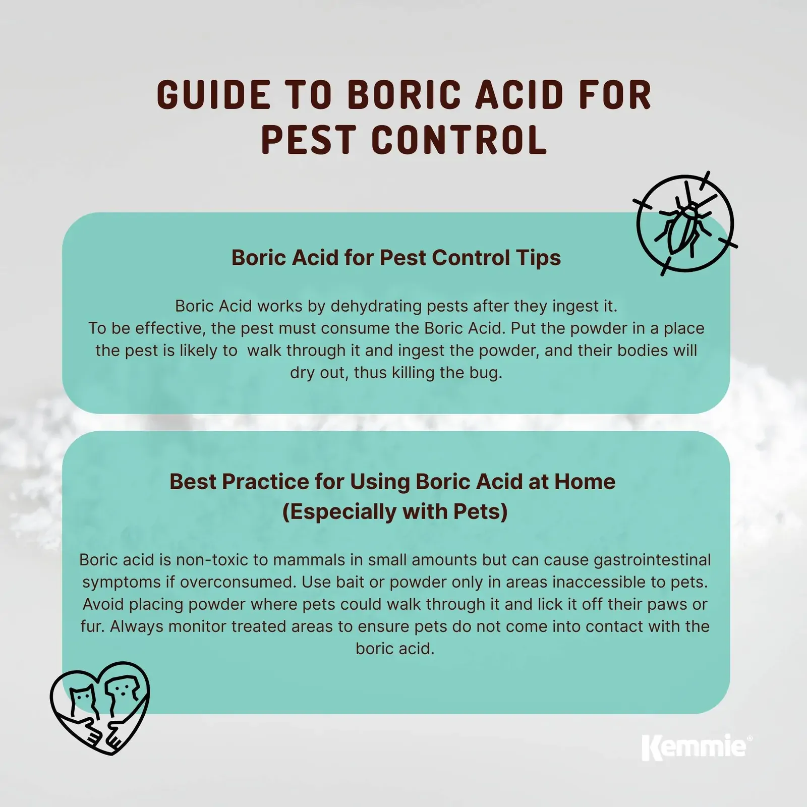 To use boric acid in pest control, the idea is to get the pest to eat it, and their bodies will dry out, thus killing the bug.