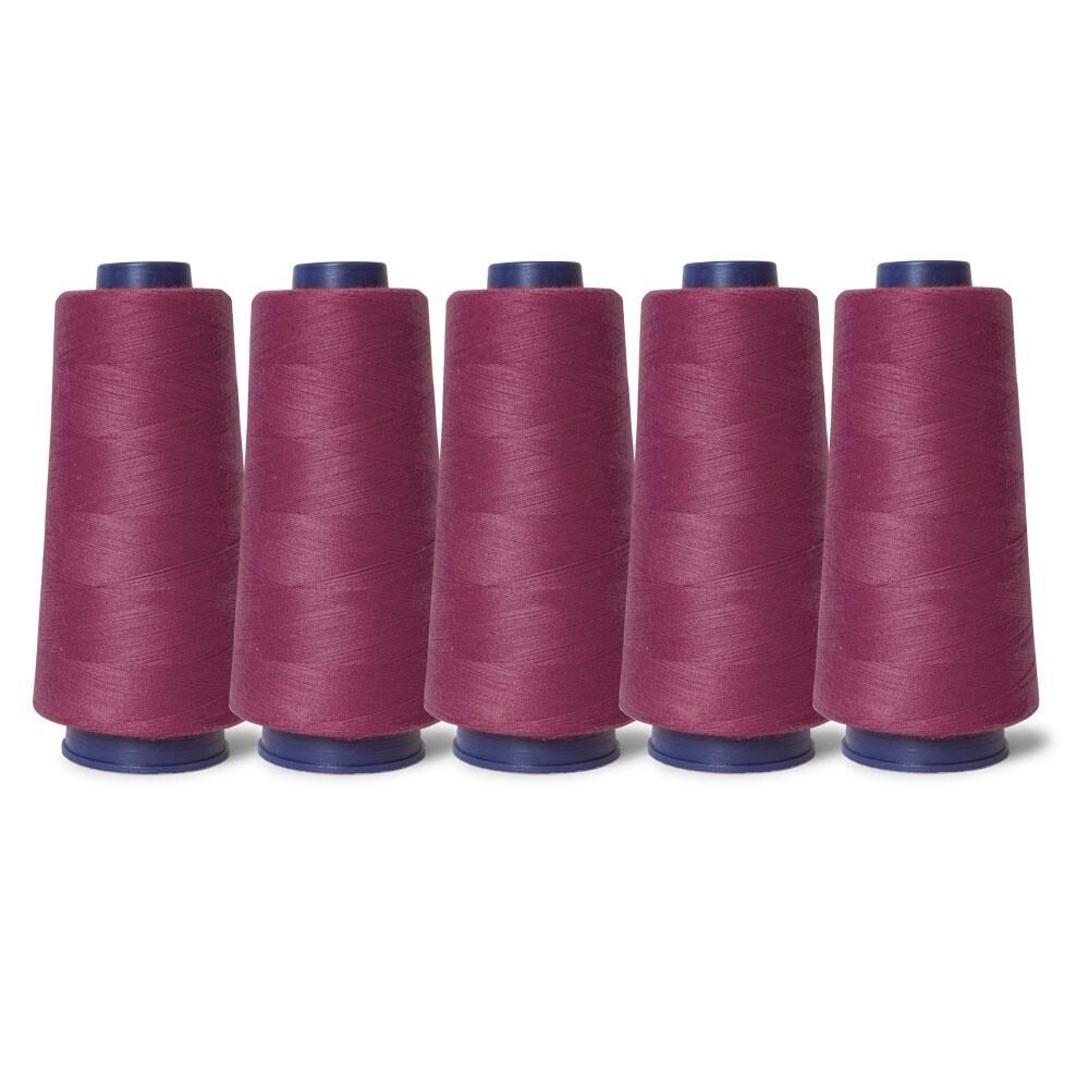 5x Cerise Sewing and Overlocking 2000m Polyester Thread by Hemline.