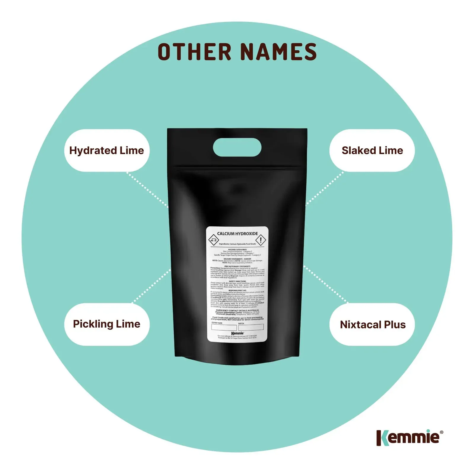 Food Grade Calcium Hydroxide (traditionally called slaked lime or hydrated Lime) is an inorganic compound with the chemical formula Ca(OH)2.