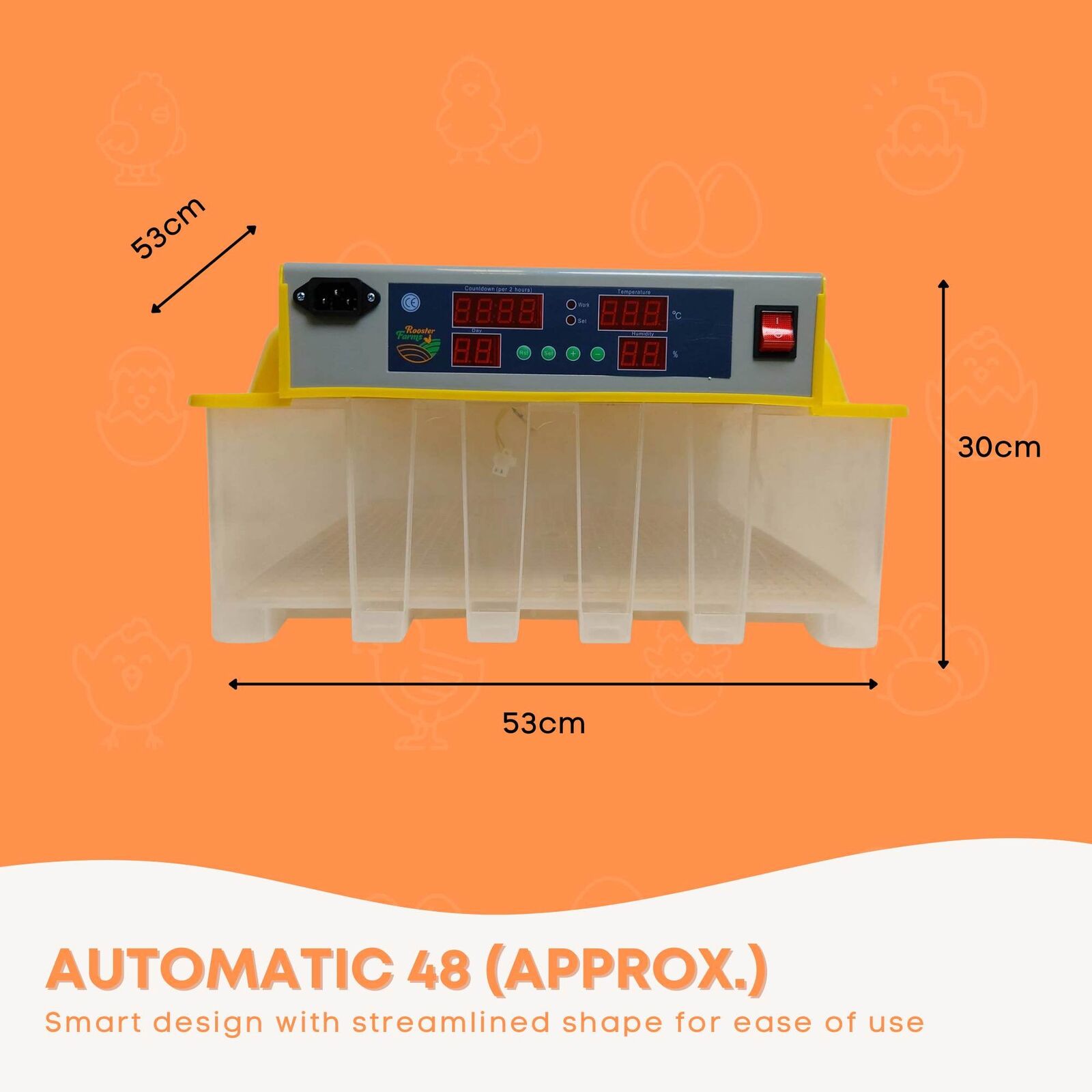 Automatic 48 (approx.) Egg Incubator with all accessories including Feeder, Drinker, Moisture Spray Bottle, Water adding Bottle Egg Candler (Tester).