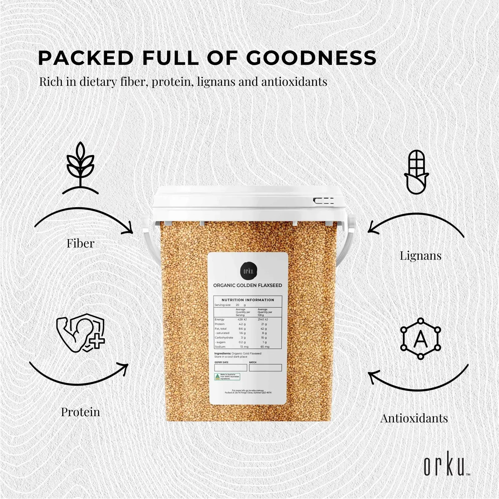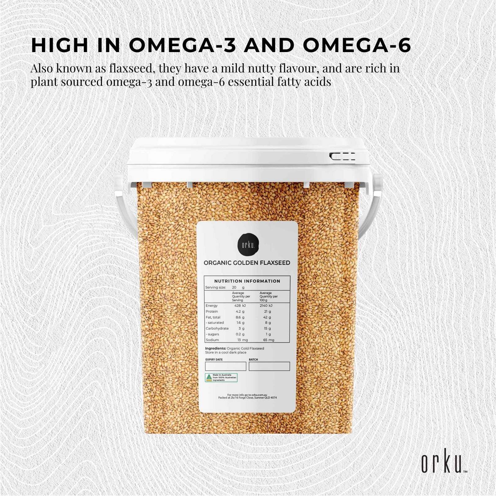 Orku Golden Linseed, are harvested in Australia, are organic and non GMO.