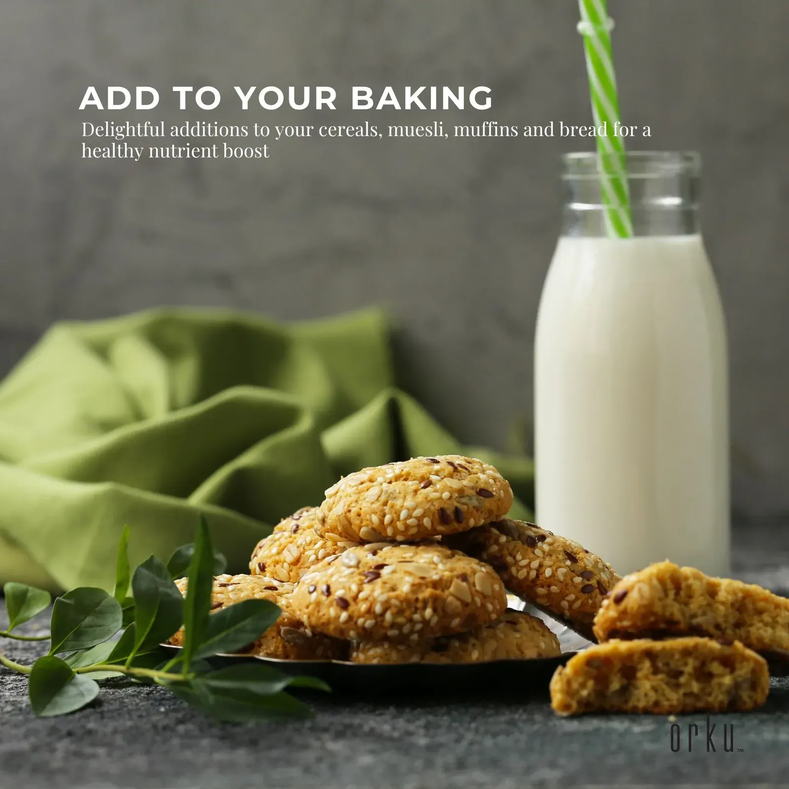 Rich in dietary fibre , protein, lignans and antioxidants, mix these delightful additions to your cereals, muesli, muffins and bread for a healthy nutrient boost.
