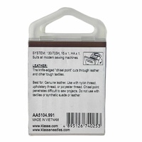 Klasse Leather Needle has a slight cutting point, knife edged "chisel point" for penetrating leather.