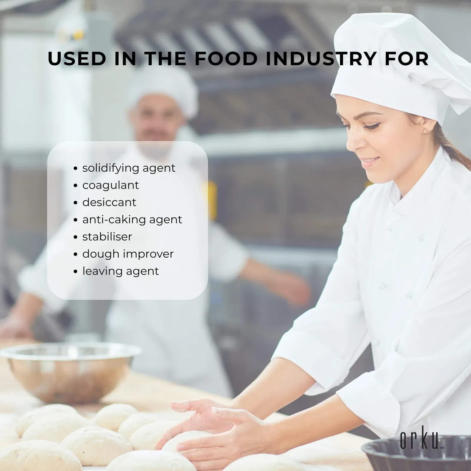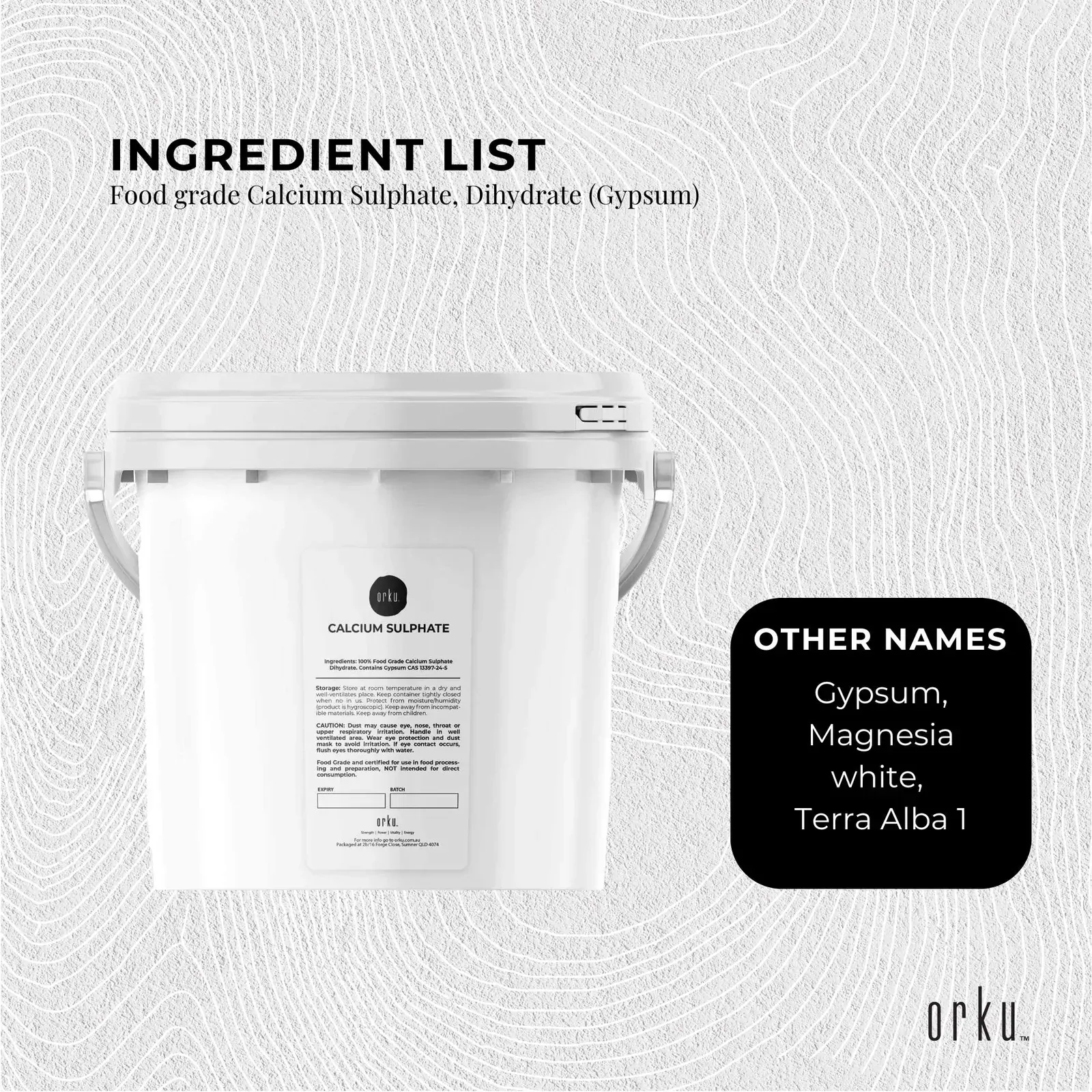 A very fine free flowing odourless and tasteless white powder, Calcium Sulphate is used in the food industry as a solidifying agent, coagulant, desiccant, anti-caking agent, stabiliser, dough improver, and leaving agent. It is also used in brewing as a filter and helps the fermentation process as well as in the manufacturing and as solidifying of Tofu.
