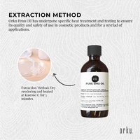 With its potent blend of essential fatty acids and vitamins, Orku Emu Oil has undergone specific heat treatment and testing to ensure its quality and safety of use in cosmetic products and for a myriad of applications.