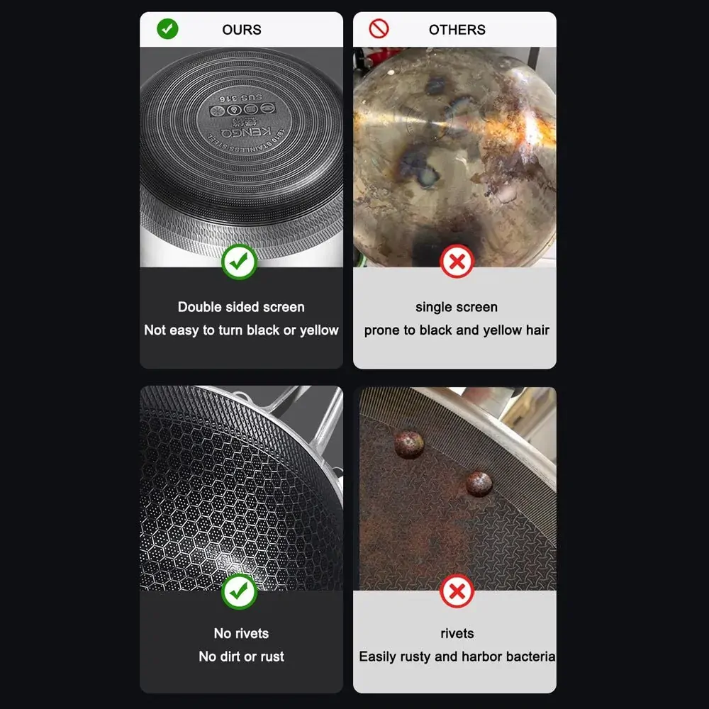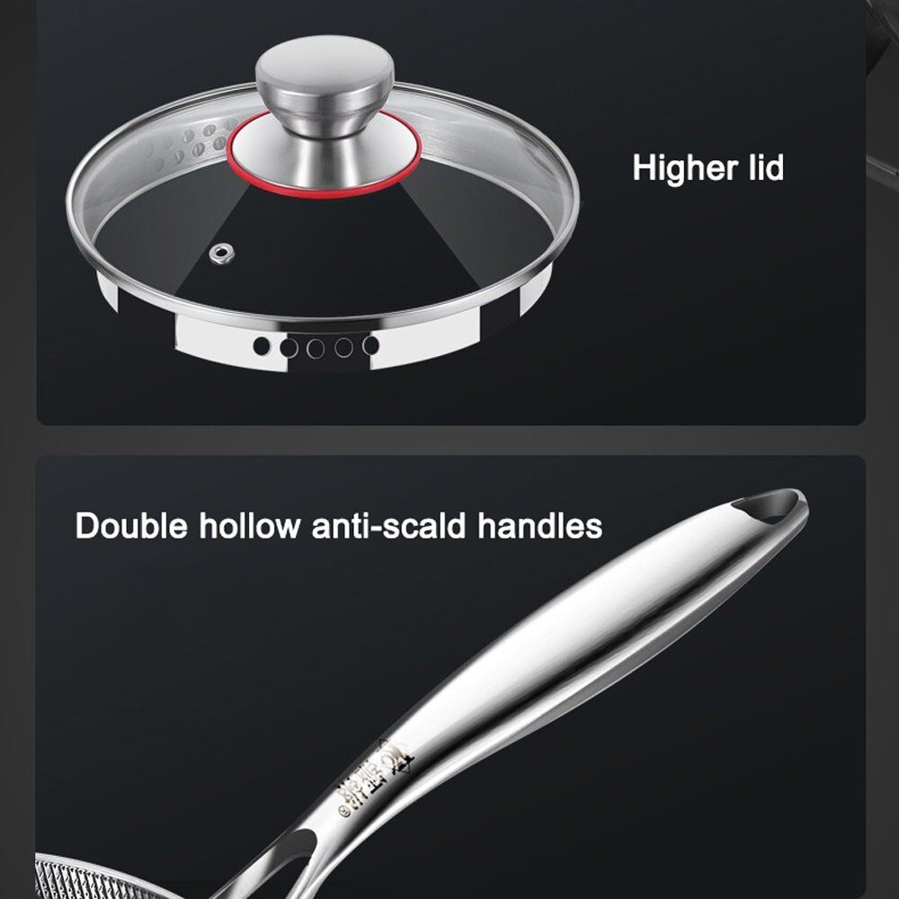 Elevate your cooking experience with our 22cm Non-Stick Milk Pot, crafted from high-grade 316 stainless steel. The honeycomb double-sided design ensures even heat distribution, complemented by a raised lid for efficient cooking. Includes a 304 stainless steel steam grid and frying grid for versatile culinary adventures.