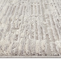 This Addie Soft pile rug is a cozy and elegant addition to any room. With a high-and-low sculpted pile with up to 20 mm thickness.that feels plush and soft to the touch, it provides a comfortable and inviting feel to your space. The neutral color palette of the rug makes it a versatile choice for any home and adds a touch of sophistication. Small tassels at the ends give it a charming detail.This attractive collection, with its subtle designs and geometric patterns is made from soft polyester. This highly decorative collection is power loomed in Turkey and has shed-resistant, anti-static properties. Collection: Alpine Collection Colour: Lt. Grey Shape: Rectangle Construction: Power-loomed Main Materials: Polyester Backing Materials: Jute and Cotton Pile Height (approx.): 12 to 20mm Total Thickness - Pile + Base (approx.): 14 to 22mm Density (Points per SQM): 256.000 Distressed Finish (Y/N): N Fringes (Y/N): Y Country of Origin: Turkey Warranty: 12 months