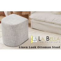 La Bella Ottoman Stool Linen Fabric Footstool Foot Rest Pouffe Pouf Seat - Cream Grey