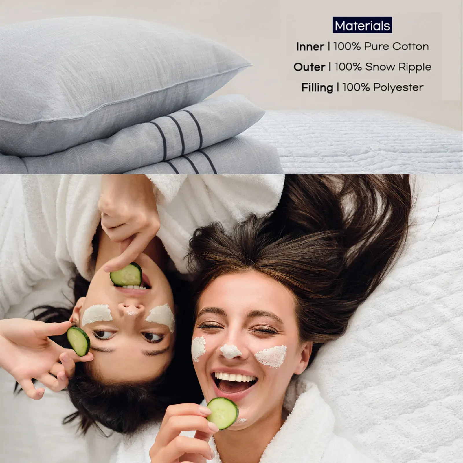 Snow ripple fabric: SAESOM's Flua Snow Comforter set is meticulously crafted with snow ripple fabric, an exquisite seersucker variation. This unique fabric employs finer yarn, delivering an exceptionally soft and gentle touch that feels like a dream against your skin.