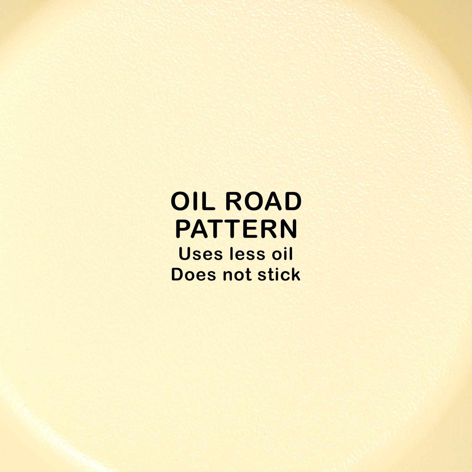 Giorno Felice IH 28cm non-stick Pan harnesses Korean technology, featuring an innovative oil-road pattern layer that ensures even oil distribution, reducing the need for excess. Moreover, it adds a vibrant splash of trendy color to your kitchen.