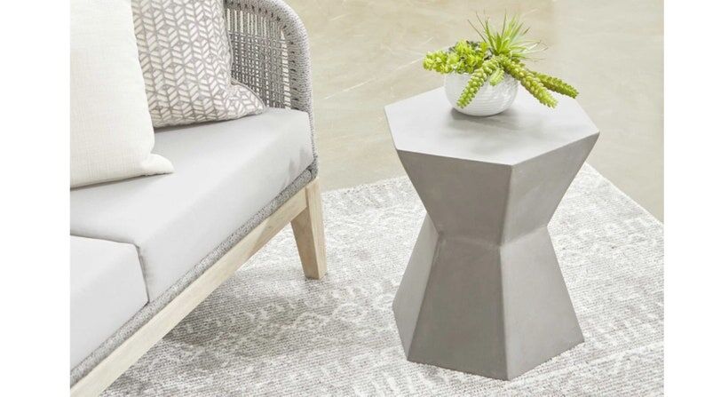 LIGHTWEIGHT CONCRETE: This side table is constructed with lightweight concrete for a smooth look. This provides a highly durable structure that can hold a substantial amount of weight.