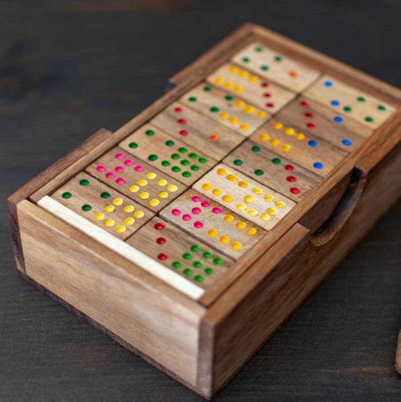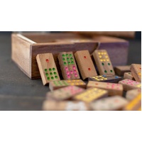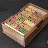 This is a beautiful, handmade wooden domino game set - The box and the dominoes pieces are carefully handcrafted, made entirely of natural strong wood (Thailand Mango wood. The box includes all the domino pieces needed for your game.