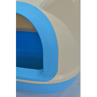 Hooded Cat Toilet Litter Box Tray House WithScoop Blue