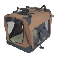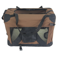 Large Portable Foldable Pet Dog Cat Puppy Travel Cage Soft Crate-Brown