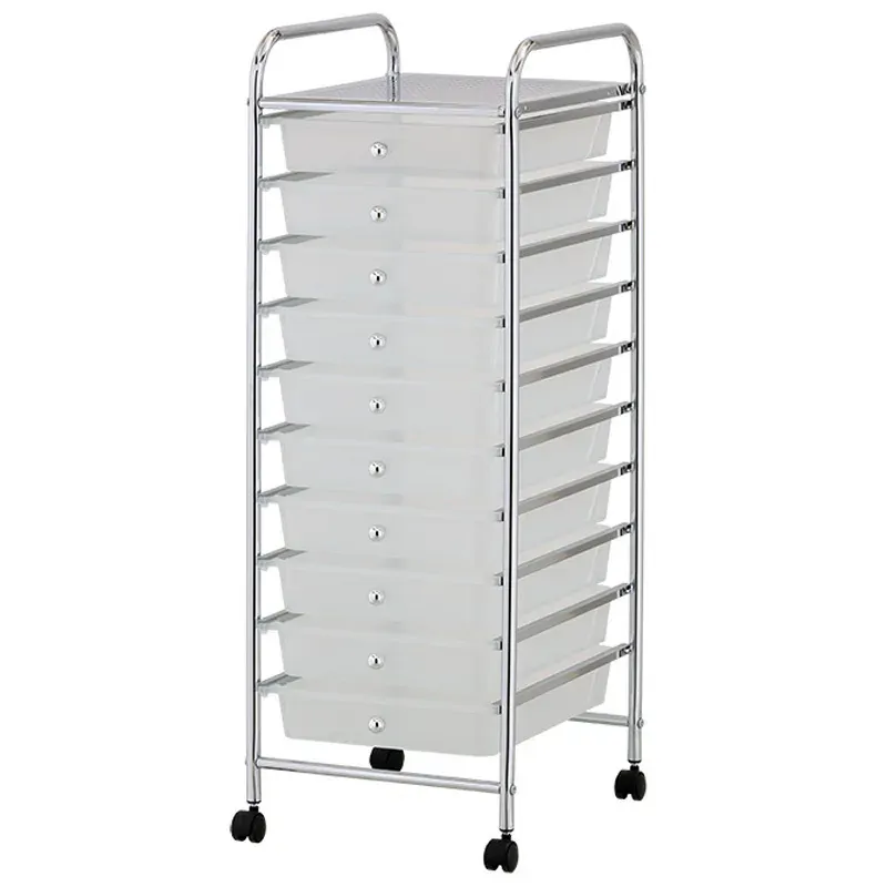 White Plastic Storage10 Tier with Metal Trolley Shelf and Slide-Out Drawers