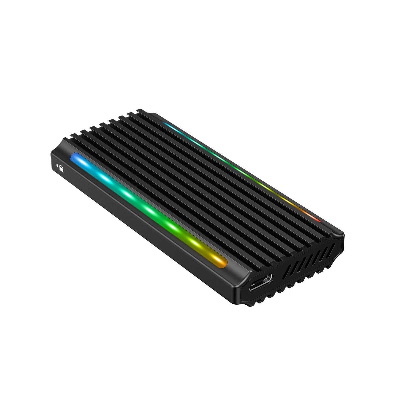 The elegant design has an innovative aluminium casing with RGB light on both sides, with breathing effect when powered, and switch to flowing effect when transferring data. It's compact and portable, so you can easily put the enclosure into your pocket or laptop bag. The enclosure is plug and play and USB powered, no external power required.