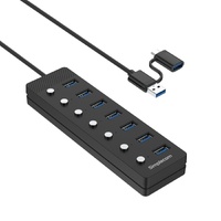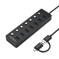 Simplecom CH375C SuperSpeed USB-A and USB-C to 7-Port USB 3.0 Hub 5Gbps Individual Switches and Power Adapter