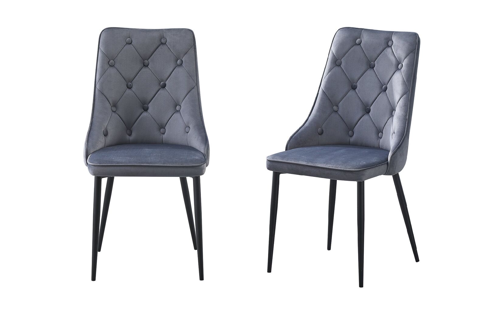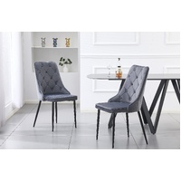 Introducing the stylish and elegant Grey Button Tufted Dining Chair with sleek Black legs. Experience unparalleled comfort with high-quality materials, this chair features sturdy Metal Legs and a luxurious Velvet Seat Top for a touch of sophistication.