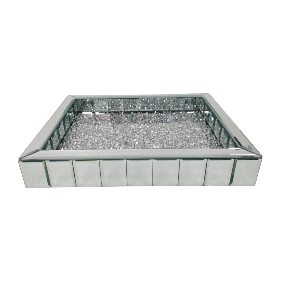 Introducing the Vogue Diamond Tray, a luxurious and sophisticated home decor item that will elevate the ambiance of any room. This exquisite tray is a true statement piece, designed with a bevelled mirror and adorned with diamonds, adding a touch of elegance and glamour to your living space.
