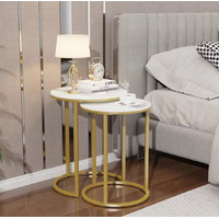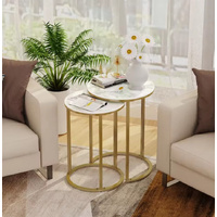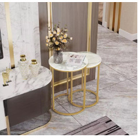 The Deva White Marble Stone Round Nested Side Table Set is a luxurious and versatile addition to any living space. Designed with elegance and functionality in mind, this sophisticated table set features stunning white marble tops and chic gold legs, making it the perfect accent piece for contemporary and classic interiors alike.