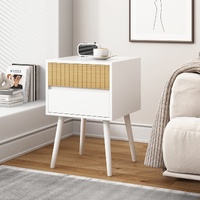 Materials: MDF painted body, Solid pine wood legs, MDF melamine drawer front